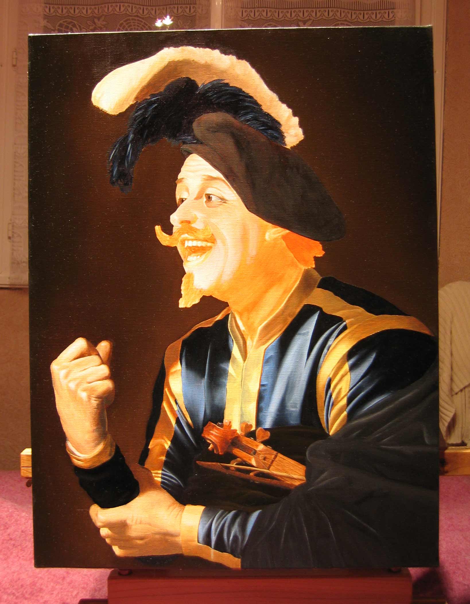 L'objectif est de faire une reproduction la plus fiable possible de l'original « The Laughing Violinist » (ou « The Merry Musician ») peint par Gerrit Van Honthorst (04/11/1590 - 27/04/1656) en 1624 ci-contre.
