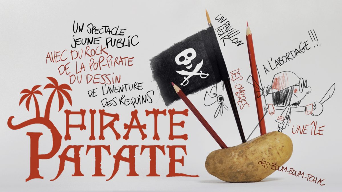 « Pirate Patate » est un spectacle multimédia à destination du jeune public à partir de 6 ans et qui innove par son genre en mêlant vidéo, dessin, théâtre et musique.