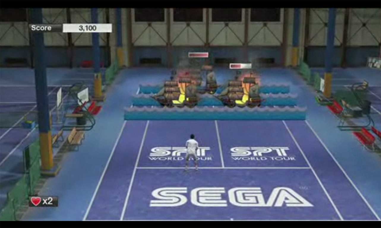 Le joueur doit affronter et couler des galions de l'autre côté du terrain avec sa balle de tennis tout en évitant les boulets de canon !
