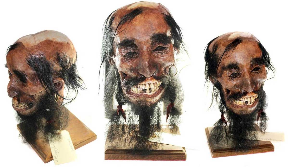 La tête momifiée de Barbe-Noire, 1430 grammes, 33 cm de hauteur.