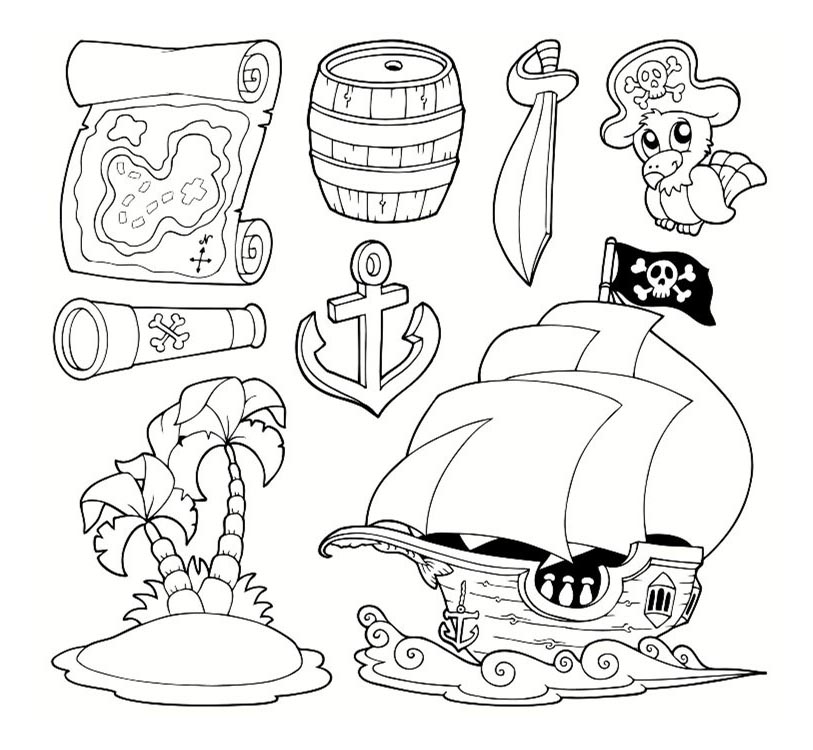 De quoi faire le bonheur des enfants avec de nombreux coloriage de pirates, des bateaux avec des canons, des perroquets, des trésors, des cartes d'îles au trésor, mais aussi des personnages connus tels que Garfield, Jack Sparrow, Fée Clochette...