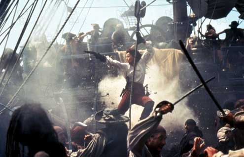 Il est vrai qu'on voit très souvent le pistolet à silex dans les films de pirates, simplement car on affiche les pirates durant l'âge d'or de la piraterie, durant les années 1660 à 1726.