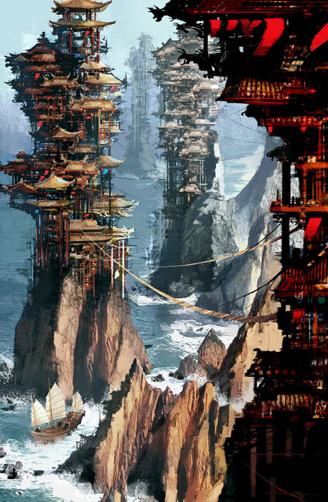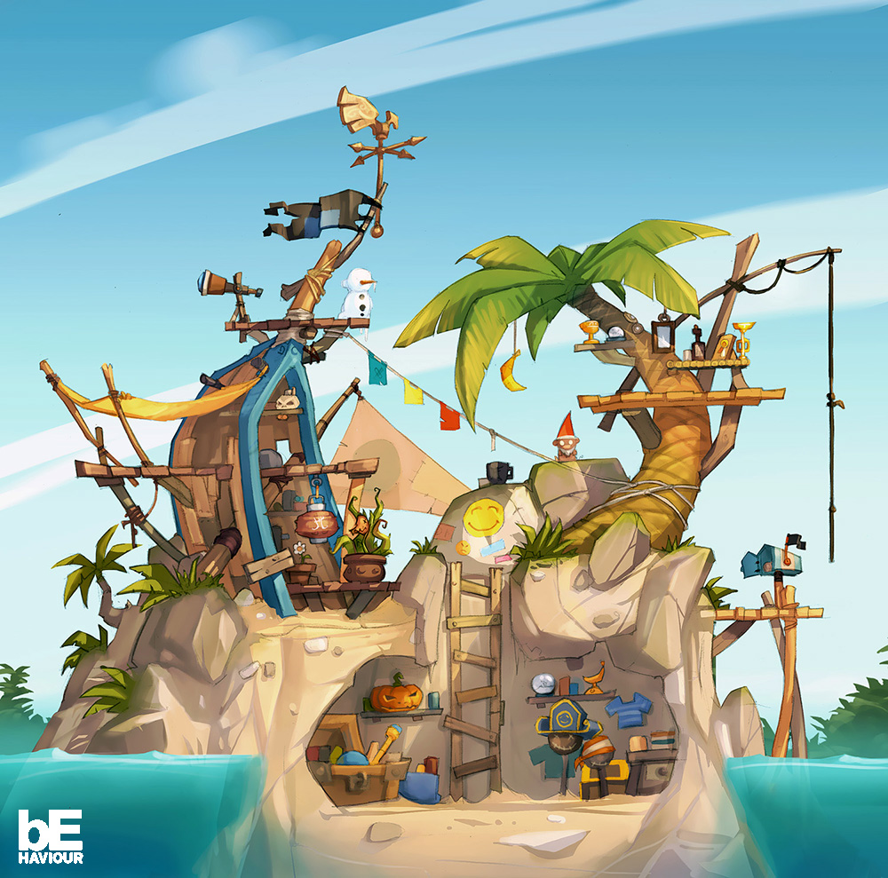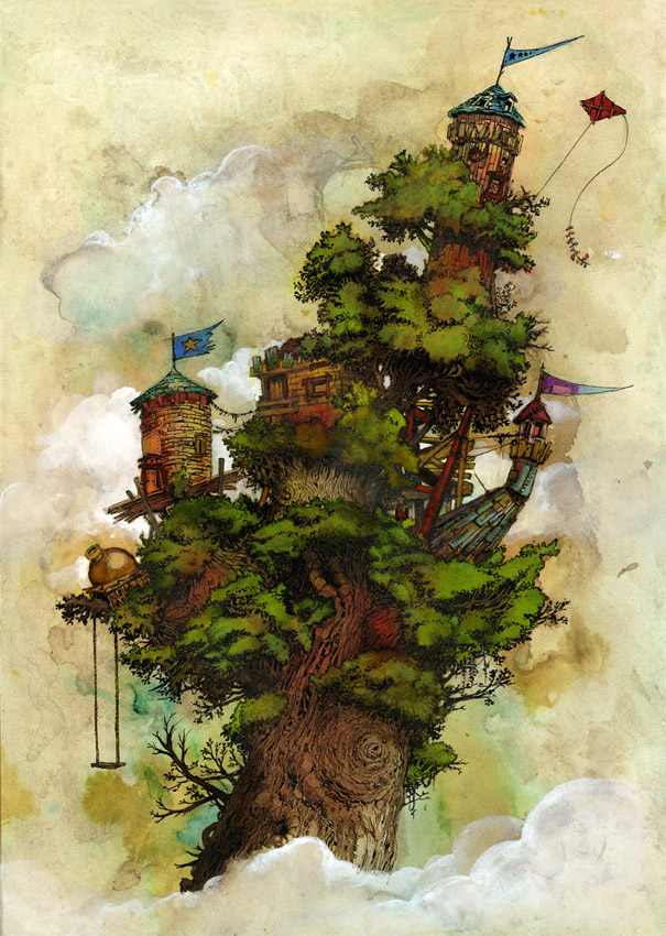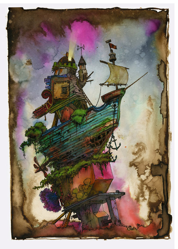 Des petits bouts d'îles d'une beauté magnifique, et surtout surréaliste... mais pas toujours... la partie immergée de l'île peut être un gigantesque monstre aquatique, comme la très belle illustration "The pirate Cruncher" ou encore "Tentacle love" et quelques autres...