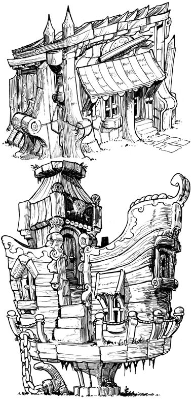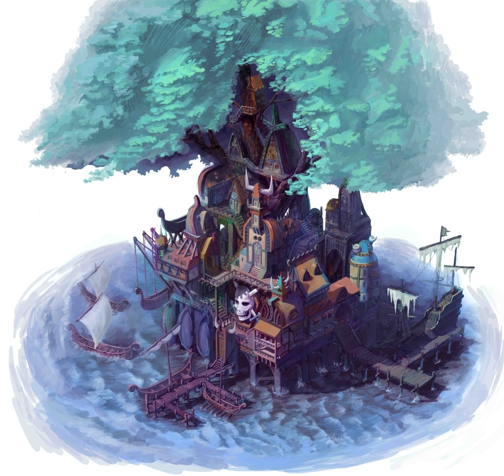Des maisons de pirates en bois, toutes biscornues, construites sur les restes d'épaves de galions. Un vrai havre de paix à la fois magique et mystérieux, calme et reposant.