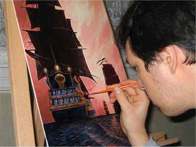 Un pinceau taille zéro pour les détails de la coque et des cordages.