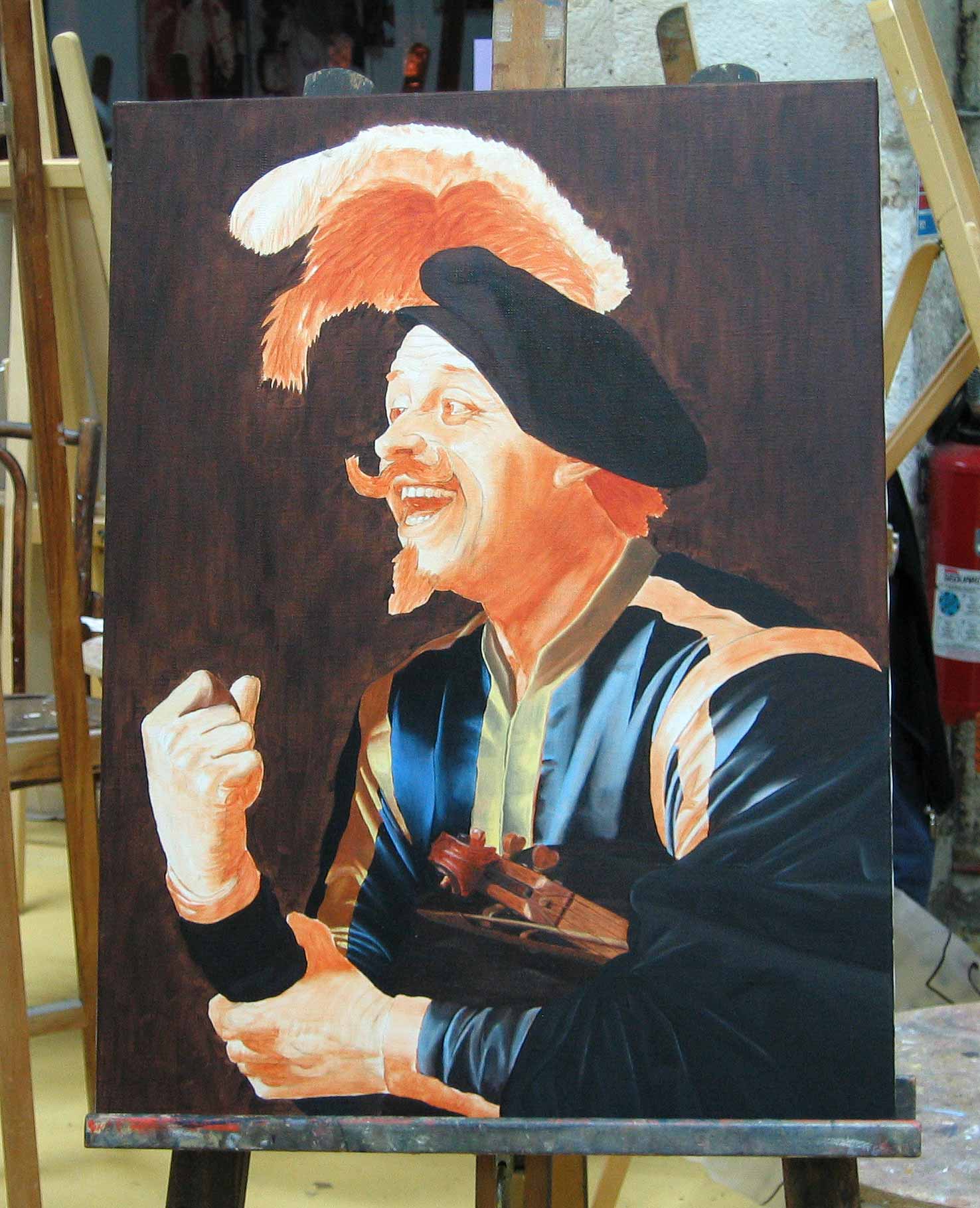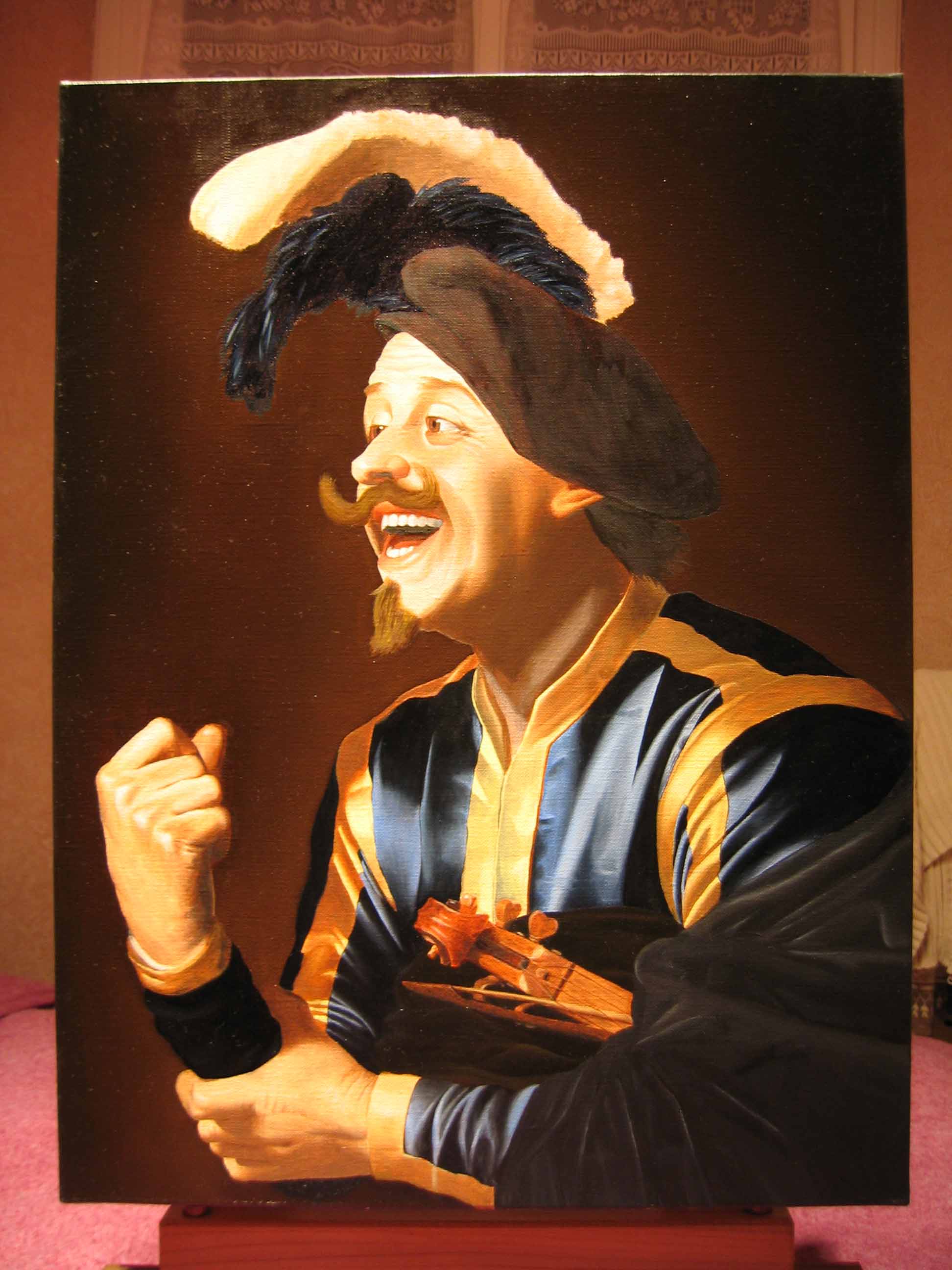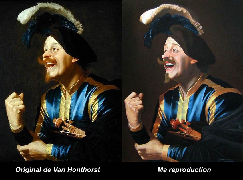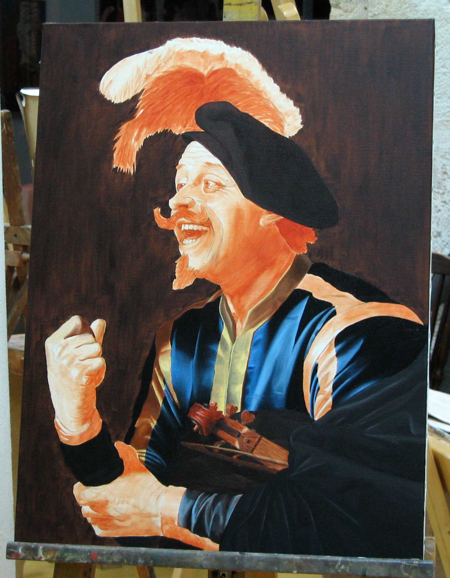 L'objectif est de faire une reproduction la plus fiable possible de l'original « The Laughing Violinist » (ou « The Merry Musician ») peint par Gerrit Van Honthorst (04/11/1590 - 27/04/1656) en 1624 ci-contre.