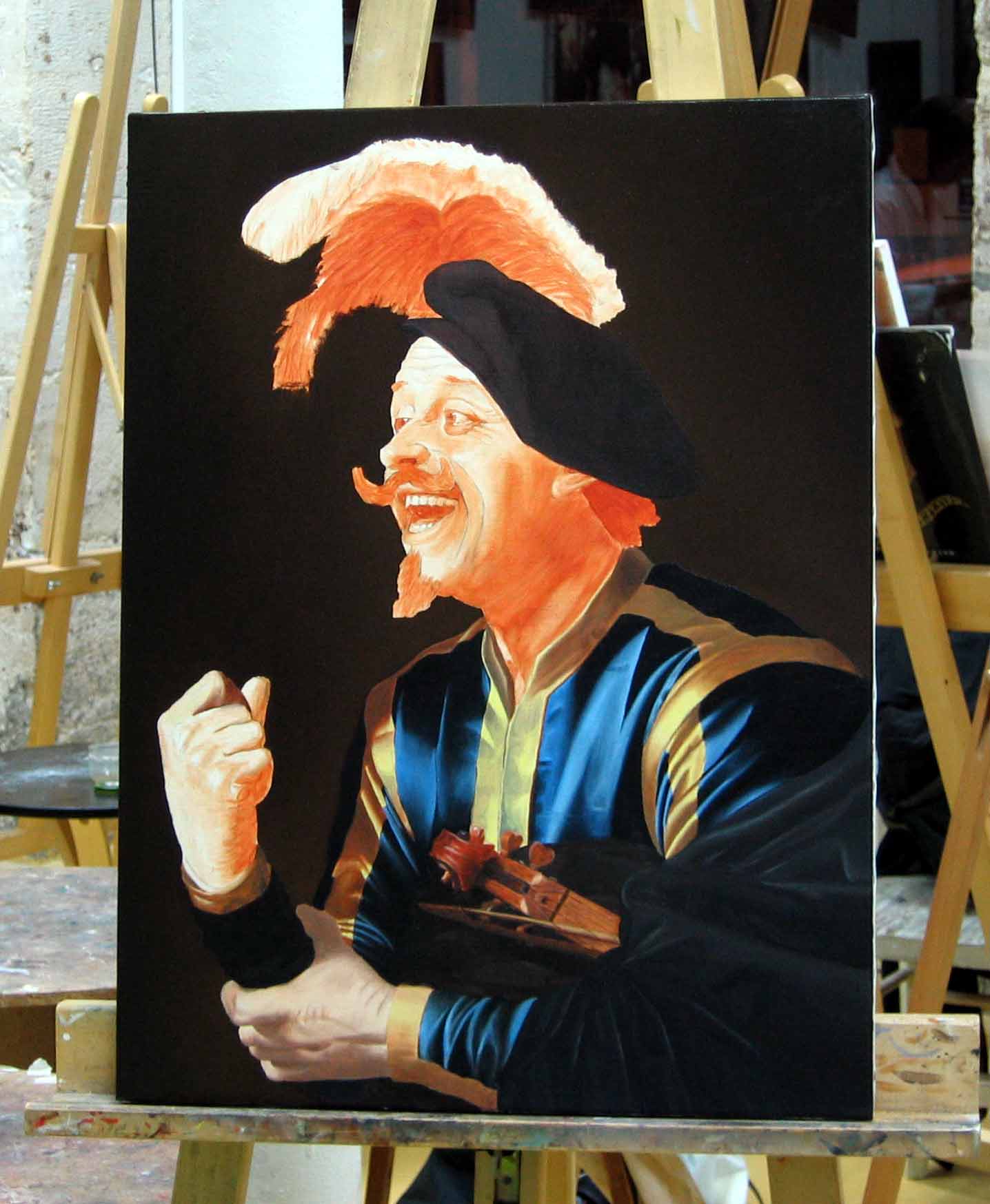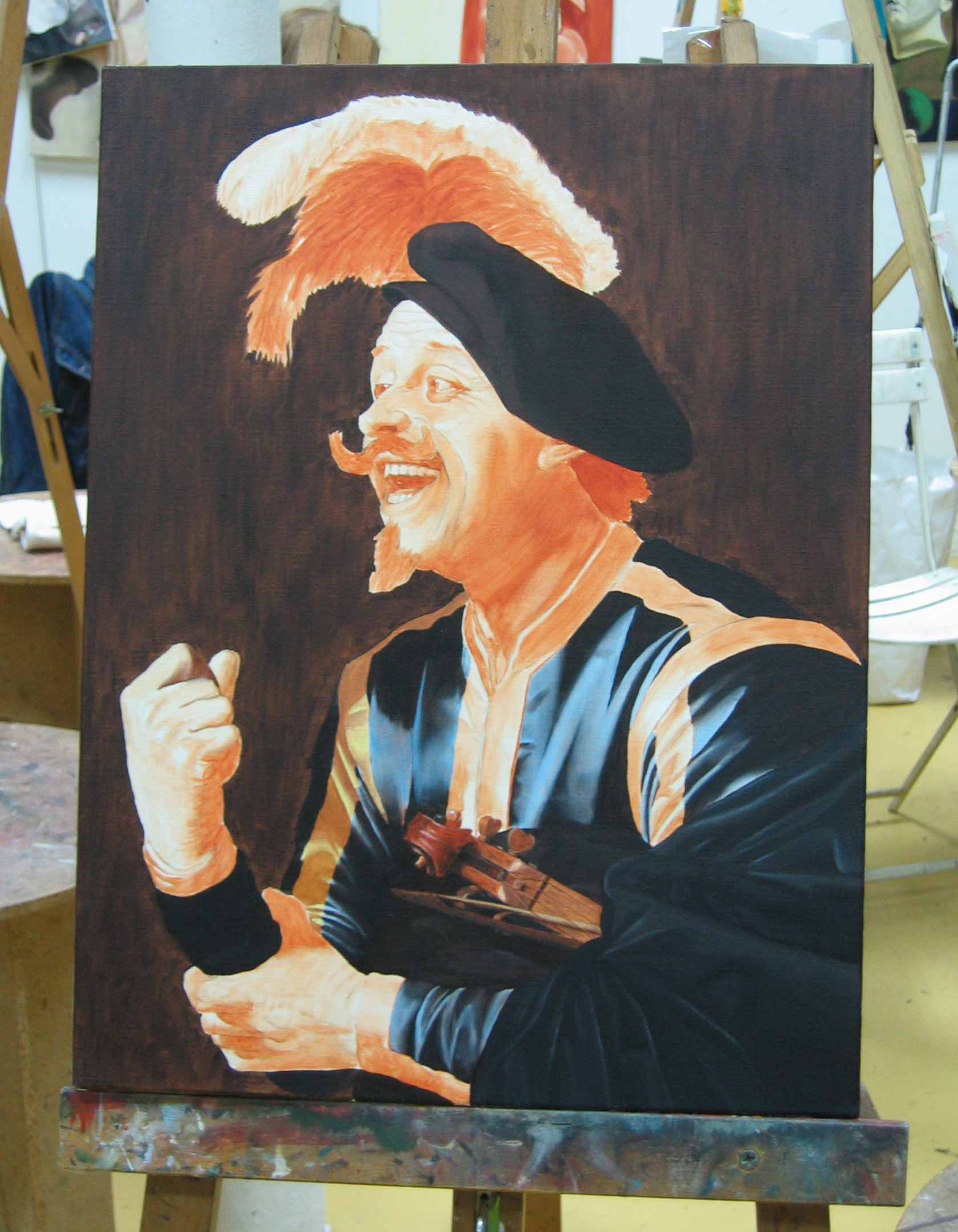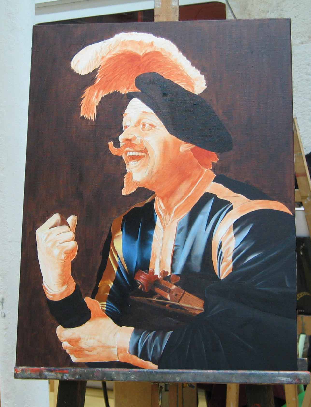 L'objectif est de faire une reproduction la plus fiable possible de l'original « The Laughing Violinist » (ou « The Merry Musician ») peint par Gerrit Van Honthorst (04/11/1590 - 27/04/1656) en 1624 ci-contre.