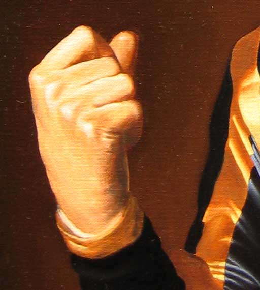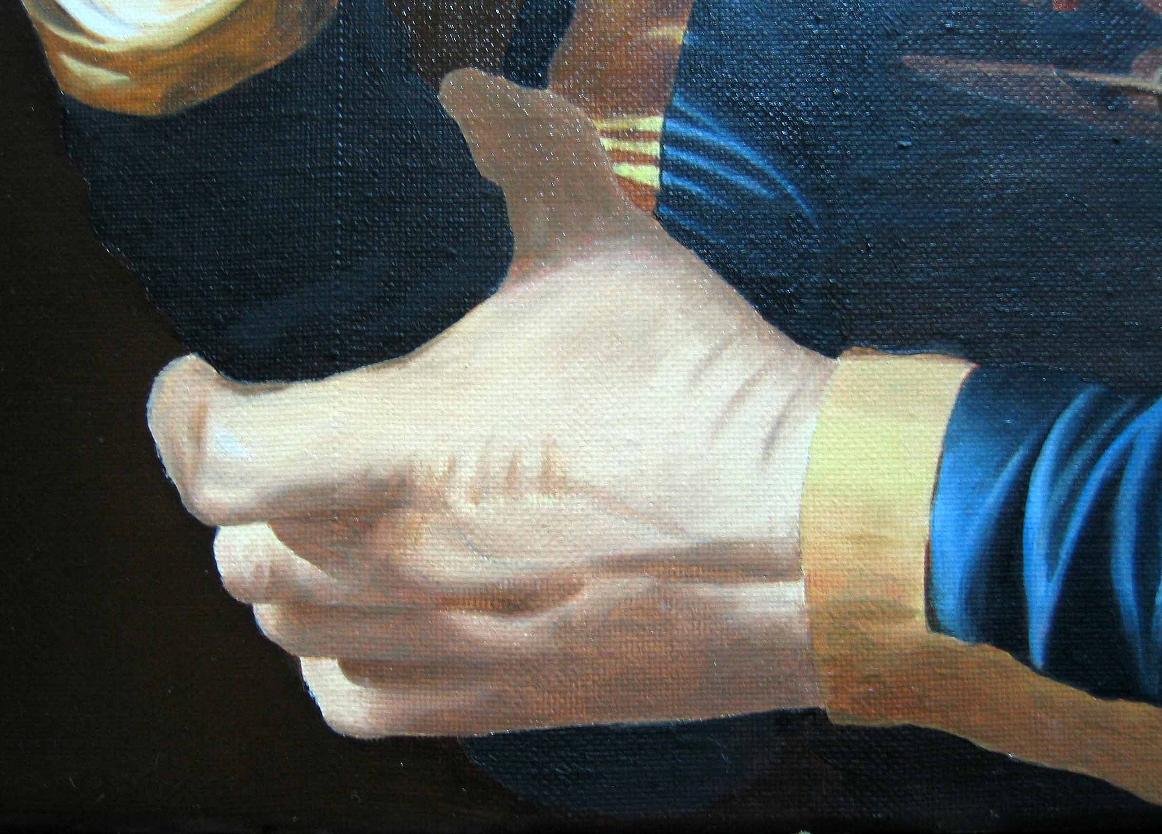 Et la petite touche finale... avec émotion... ma signature en bas à droite en n'oubliant pas d'indiquer que je l'ai peinte d'après l'excellent Caravagiste : Gerrit Van Honthorst.