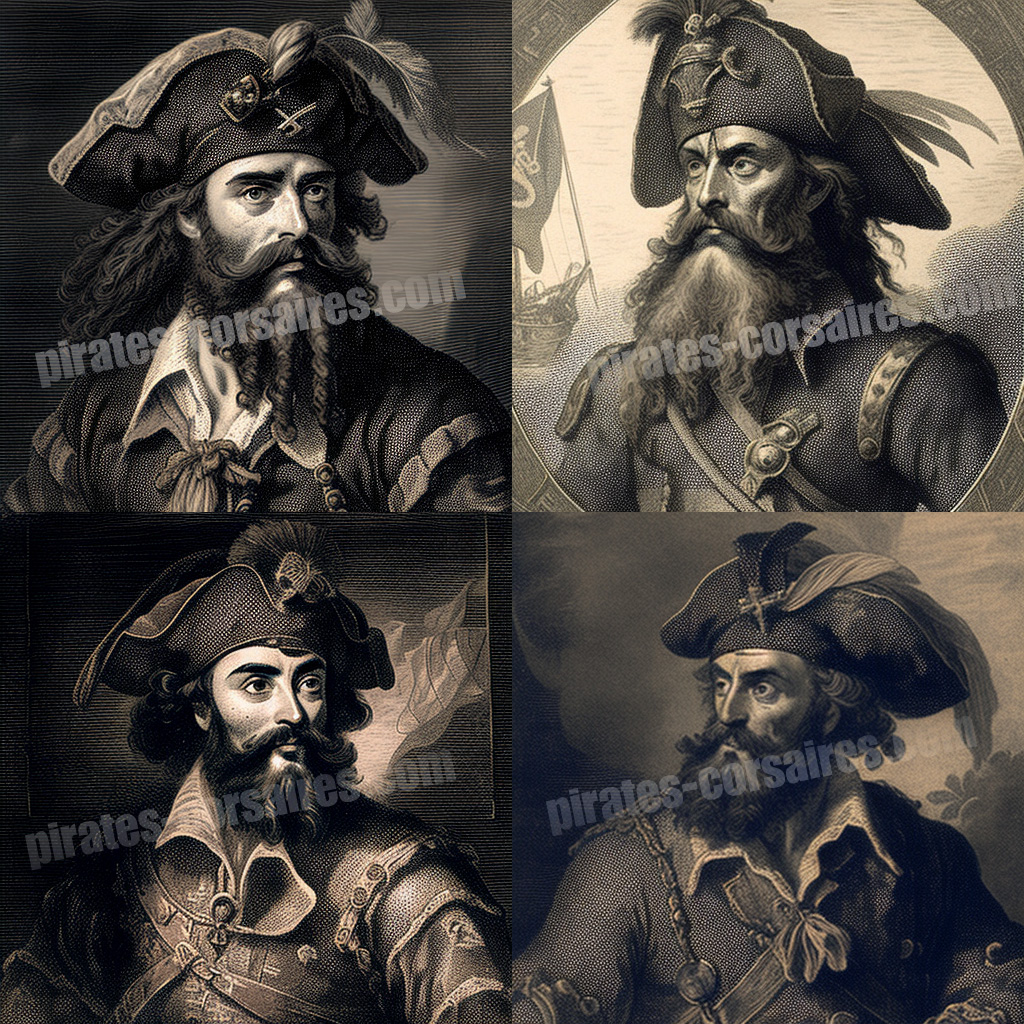 (Gravure du 17ème siècle du pirate Barbe Noire)