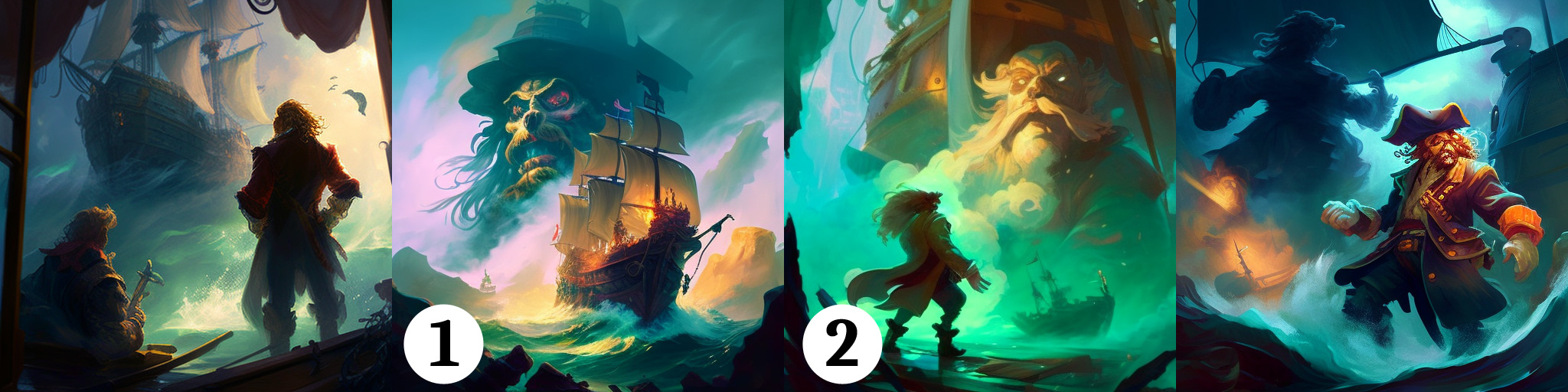 On s'aperçoit bien que l'IA n'est pas infaillible, car les différentes scènes de combat ne représentent pas vraiment l'existant en gravure et les différentes représentations au fil des siècles. Et Barbe Noire n'a plus son aspect habituel avec ses tresses. Quand on regarde de près, le détail des mains de chaque image est étrange, pas terminé ou mal formé.