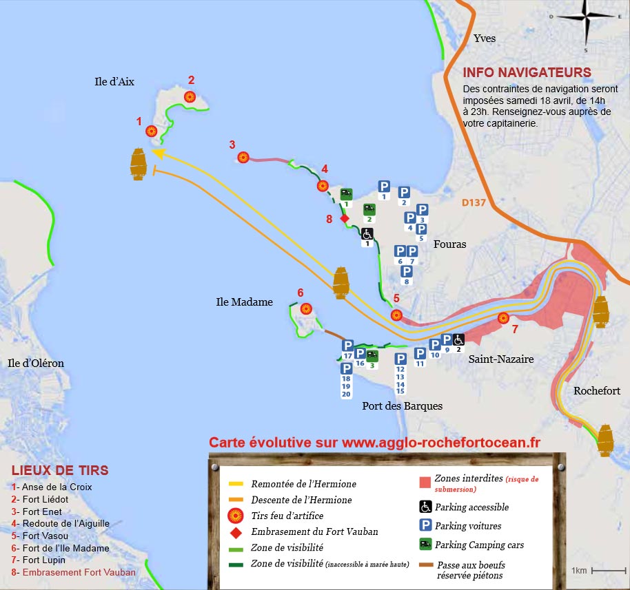Ce samedi 18 avril, un spectacle grandiose et visible de toute la côte de Rochefort, illuminera le ciel et le grand départ de L’Hermione.Au programme de ce 18 avril :