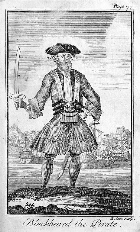 "Charles Johnson's General Historie". Blackbeard, gravure de Benjamin Cole.