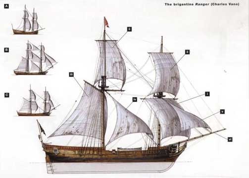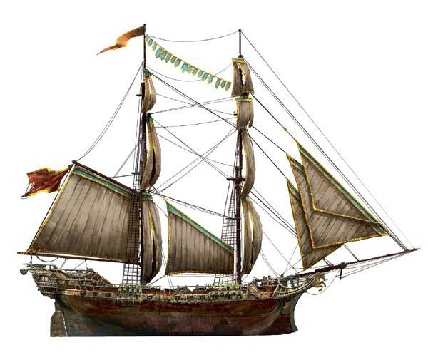 Brigantin de 12 canons et 80 hommes appartenant au pirate Charles Vane.