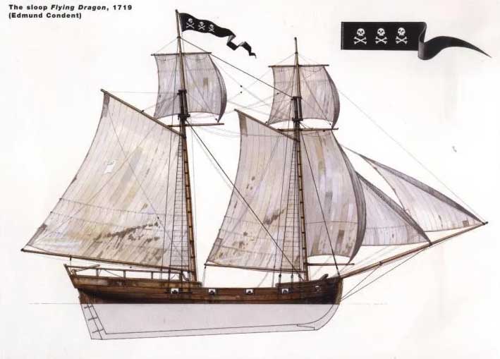 Sloop du pirate Christopher Condent en 1719. Il a capturé ce navire d'origine hollandaise aux îles du Cap-Vert.