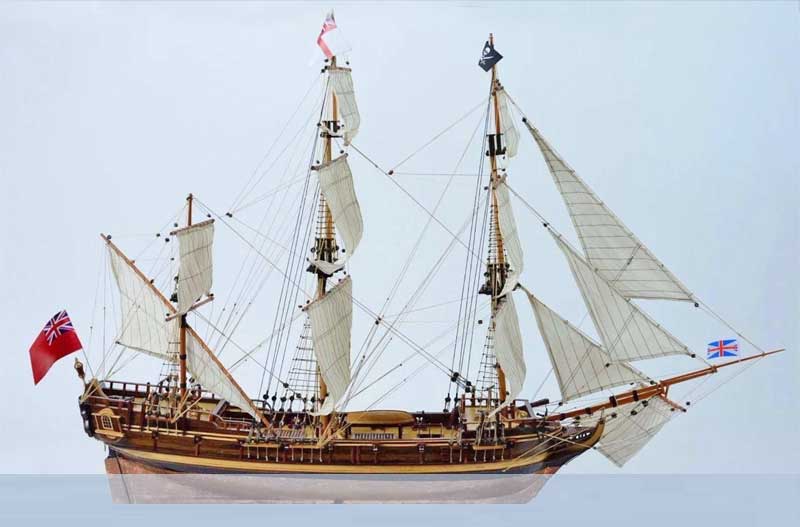 Sloop des pirates Calico Jack (Jack Rackham) et Ann Bonny en 1720.Vous pourrez retrouver le Queen Anne's Revenge ainsi que le Whydah Gally sur la vidéo ci-dessous, qui montre les différences de tailles des navires du XVIIè siècles à aujourd'hui.